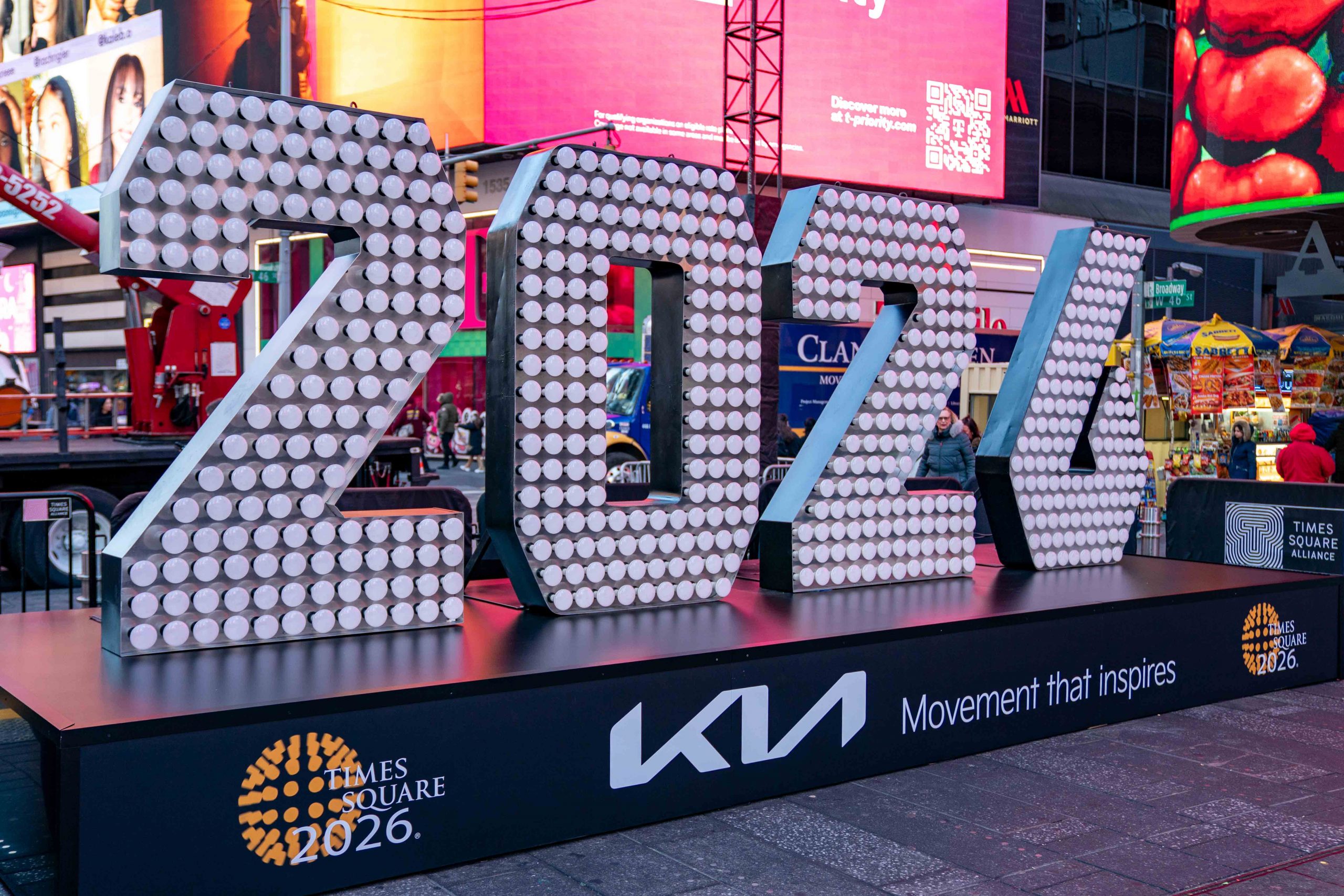 Thirteen days before the highly anticipated December 31 Times Square New Year’s Eve celebrations, the giant, seven-foot-tall numerals for “2026” arrive in Times Square. The numerals will stay on the plaza and members of the public will have the opportunity to take photos with them until 7:00 a.m. on Tuesday, December 23. Afterwards, the numerals will take a short rest before being placed atop One Times Square, officially completing the “2-0-2-6” sign that will light up at midnight on December 31.