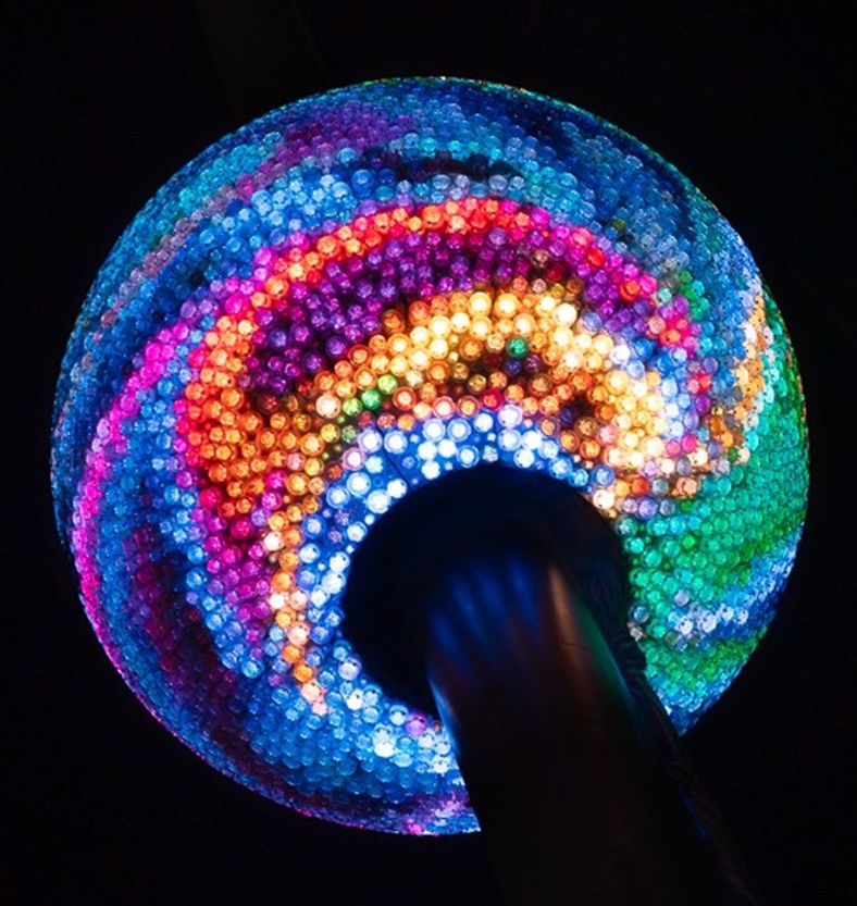 In November of 2025, the ninth version of the Times Square New Year’s Eve Ball was revealed atop One Times Square. The new Constellation Ball is even bigger than the previous Big Ball. The Constellation Ball is 12.5 feet in diameter and weighs 12,350 pounds consisting of 5,280 crystal circles illuminated by 5,280 LED light pucks. The circular shapes evoke celestial bodies, perfectly embodying the new Ball’s Constellation theme.